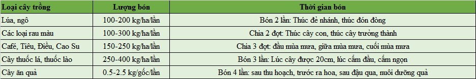 – Phù hợp với các loại cây ăn quả, cây có múi, cây thuốc lào, thuốc lá, ớt…
