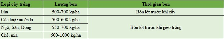 – Hàm lượng đạm: 5% – Hàm lượng lân (P2O5) hữu hiệu: 10%
